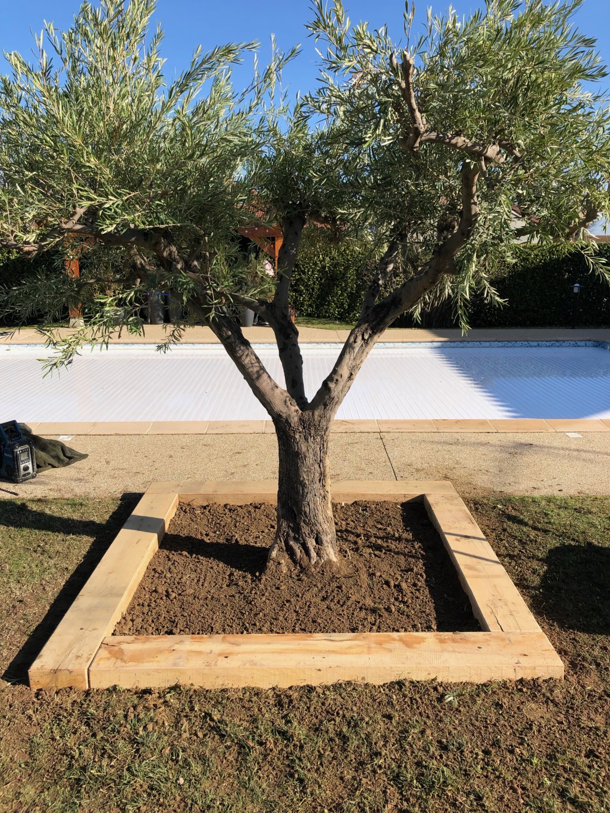 Afin d'apporter un peu de charme et de verdure aux abords de cette piscine traditionnelle, nous avons proposer à nos clients la plantation d'un Olivier centenaire à Vienne.