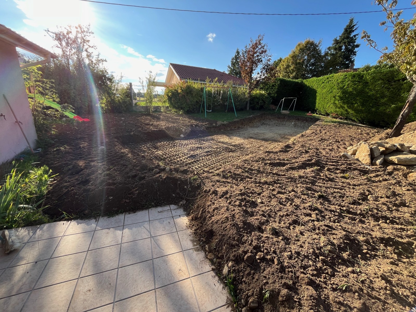 Ce client situé à St Jean de Bournay a contacté notre équipe de paysagiste professionnel pour le terrassement de son futur terrain de pétanque.